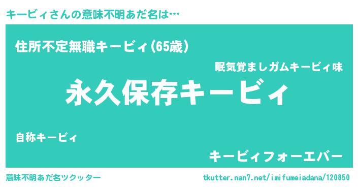 | 男性向けラノベタイトル風あだ名 | 『キービィという概念が存在しない退屈な世界 』 |