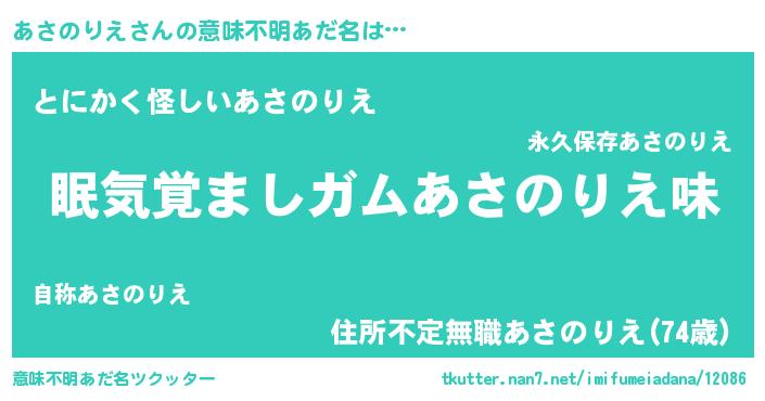 | 男性向けラノベタイトル風あだ名 | 『ノーゲーム・ノーアサノリエ』 |