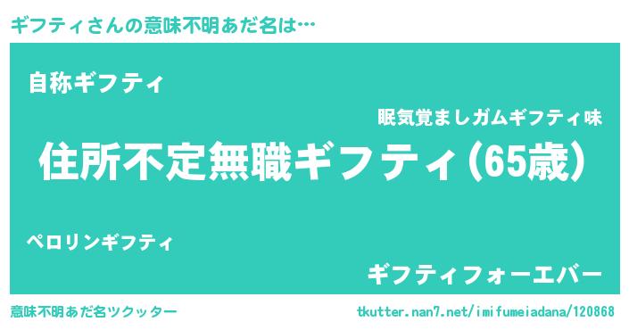 | ヒーロー風カッコイイあだ名 | 『仮面ギフダー』『究極戦士ギフティ』 |