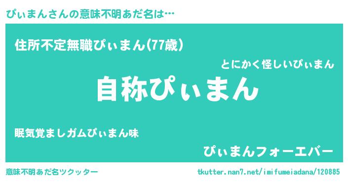 | 男性向けラノベタイトル風あだ名 | 『魔法科高校のぴぃまん』 |