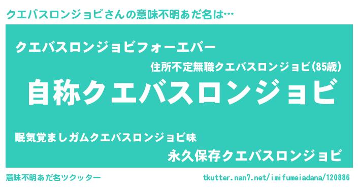 | 女子向けラノベタイトル風あだ名 | 『クエバスロンジョビなんてお断りですっ。』 |