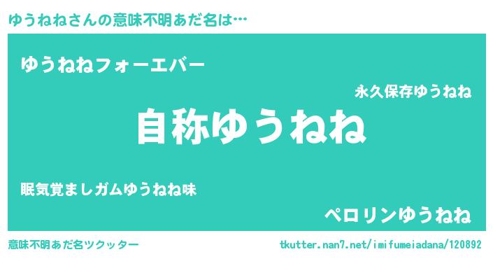 | 男性向けラノベタイトル風あだ名 | 『Re:ゆうねねから始める異世界生活』 |