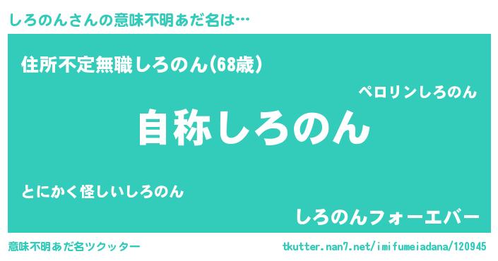 | 男性向けラノベタイトル風あだ名 | 『うちのしろのんが世界を掌握している!』 |
