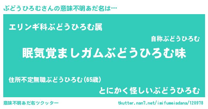 | 女子向けラノベタイトル風あだ名 | 『ぶどうひろむ恋絵巻』 |