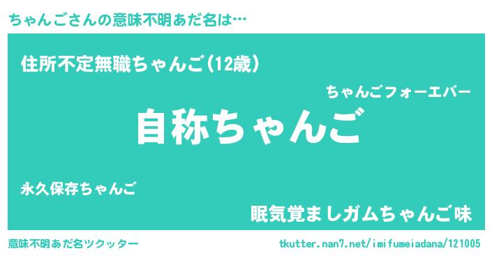 | 男性向けラノベタイトル風あだ名 | 『Re:ちゃんごから始める異世界生活』 |