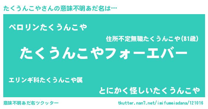 | 女子向けラノベタイトル風あだ名 | 『たくうんこやの雑貨屋さん』 |