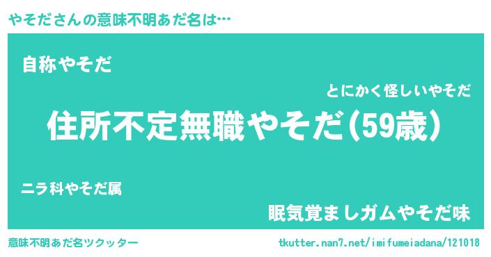 | 欧米人風あだ名 | 『やそだ・ステッグマイヤー』 |