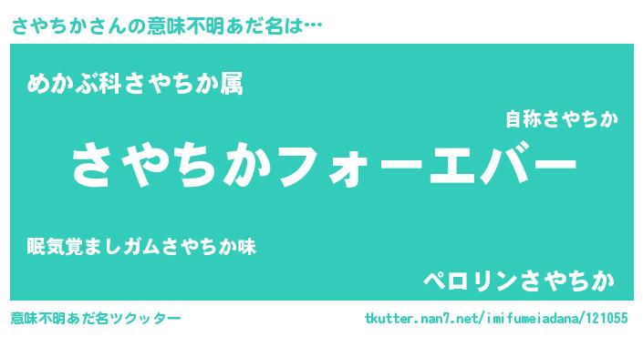 | 女子向けラノベタイトル風あだ名 | 『さやちかの雑貨屋さん』 |