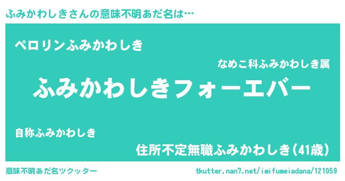 | ファンタジー風あだ名 | 『エターナルフミカワシキー』 |