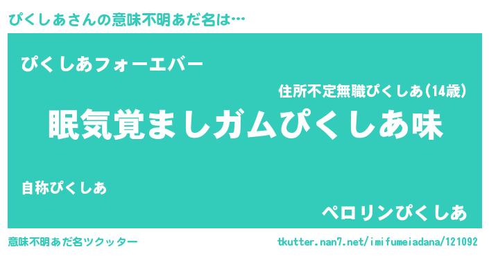 | ヘコむあだ名 | 『レバニラ』『ぴくにゅー』『ぴくお』 |