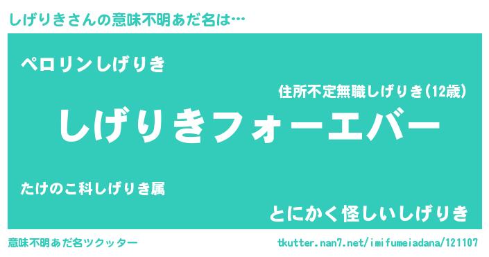 | ヘコむあだ名 | 『酢こんぶ』『しげもー』『しげを』 |