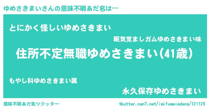 | ヘコむあだ名 | 『ゆめ太郎』『ゆめさきまい(笑)』 |