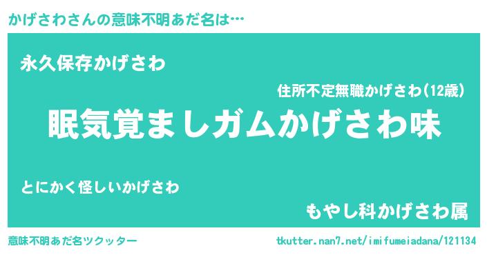| ヒーロー風カッコイイあだ名 | 『愛の使者かげさわ』『ネオカゲサワ』 |