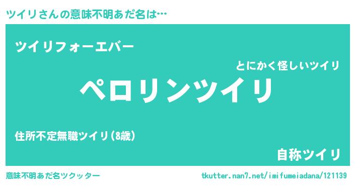 | ヒーロー風カッコイイあだ名 | 『スーパーツイリ』『ウルトラツイリマン』 |