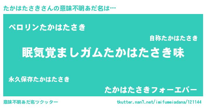 | ヘコむあだ名 | 『たかもー』『なまこ酢』『たかお』 |
