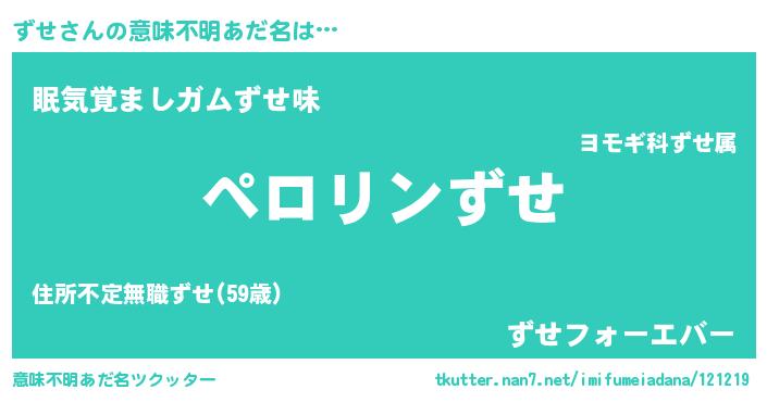 | 胡散臭い通販商品みたいなあだ名 | 『億万長者になれる水晶球…その名も「ずせ」』 |