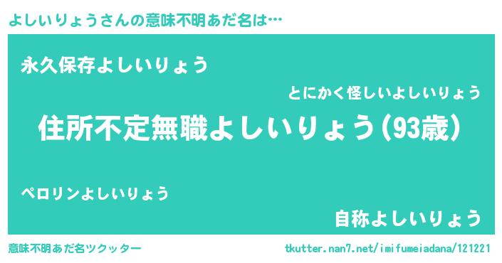 | ヘコむあだ名 | 『よしいりょう(遠い目)』『よしっ子』 |