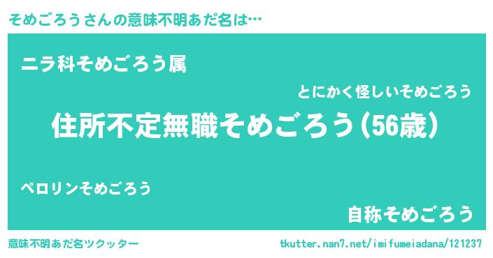 | 女子向けラノベタイトル風あだ名 | 『乙女ゲームの破滅フラグしかない悪役そめごろうに転生してしまった…』 |