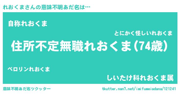 | 欧米人風あだ名 | 『れおくま・ステッグマイヤー』 |