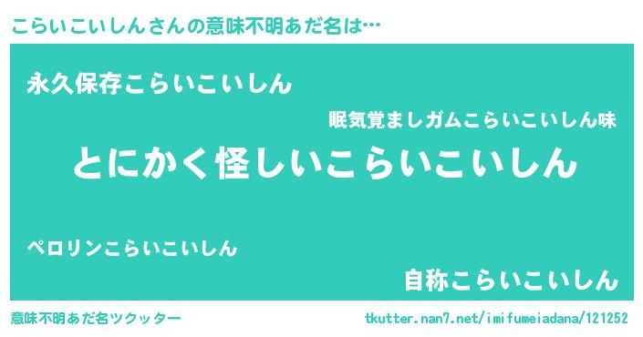 | 男性向けラノベタイトル風あだ名 | 『こらいこいしんの嫁は女の子じゃないと思った?』 |