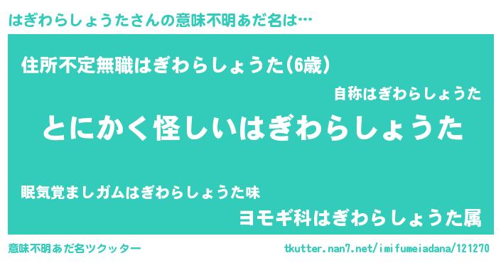 | ポケモン風あだ名 | 『メロハッギ』『ヒハギワラショウタ』 |