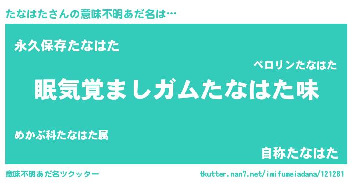| ヒーロー風カッコイイあだ名 | 『慈愛の使者たなはた』『ネオタナハタ』 |