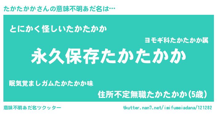 | 伝説のあだ名 | 『古より伝わる吟遊詩人たかたかか』 |