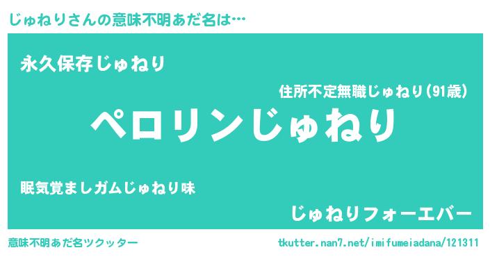 | 男性向けラノベタイトル風あだ名 | 『じゅねりの憂鬱』 |