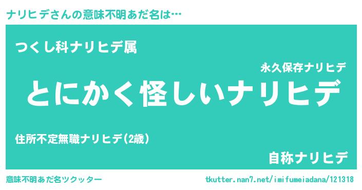 | ヒーロー風カッコイイあだ名 | 『天弓騎士ナリ』『最強戦士ナリヒデ』 |