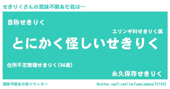 | 胡散臭い通販商品みたいなあだ名 | 『信頼と実績のネックレス…その名も「せきりく」』 |