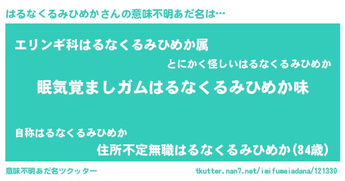 | ヘコむあだ名 | 『はるぷりん』『はるなくるみひめか(笑)』 |