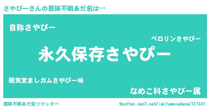 | 胡散臭い通販商品みたいなあだ名 | 『来世でも幸せになれる健康食品…その名も「さやぴー」』 |
