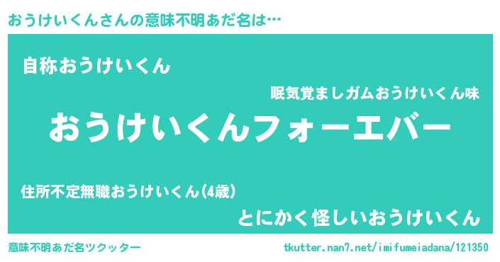 | 男性向けラノベタイトル風あだ名 | 『やはりおうけいくんの青春ラブコメはまちがっている 』 |