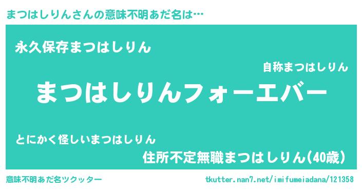 | ファンタジー風あだ名 | 『エターナルマツハシリンー』 |