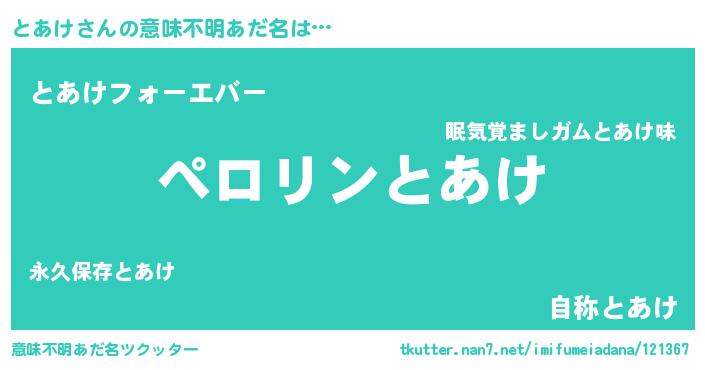 | 胡散臭い通販商品みたいなあだ名 | 『億万長者になれるブレスレット…その名も「とあけ」』 |