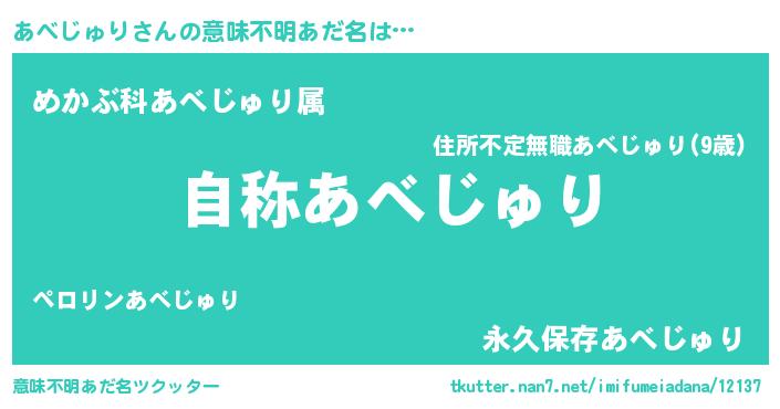 | 女子向けラノベタイトル風あだ名 | 『あべじゅりなんてお断りですっ。』 |