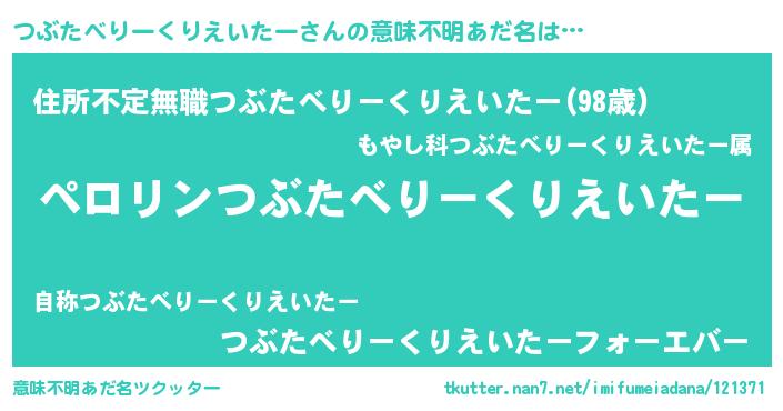 | 恥ずかしいあだ名 | 『プリティーつぶたべりーくりえいたー』 |