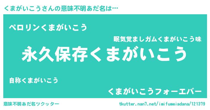 | ヘコむあだ名 | 『くまがいこう(笑)』『くまにゅー』 |