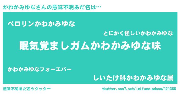 | 伝説のあだ名 | 『救世主となる占い師かわかみゆな』 |