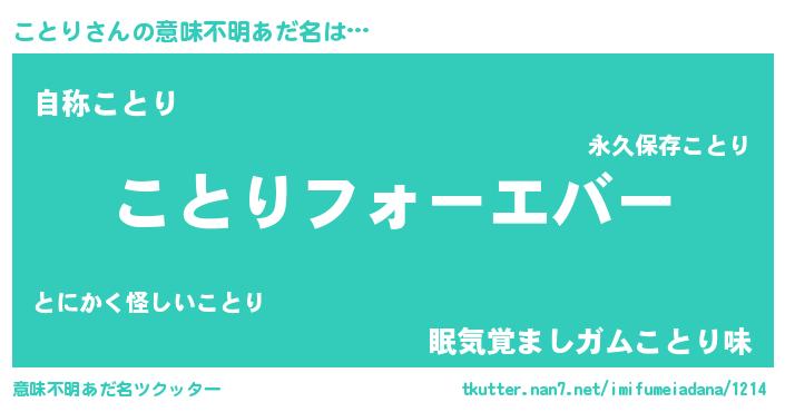 | ヘコむあだ名 | 『なまこ酢』『ことり(爆)』『ことを』 |