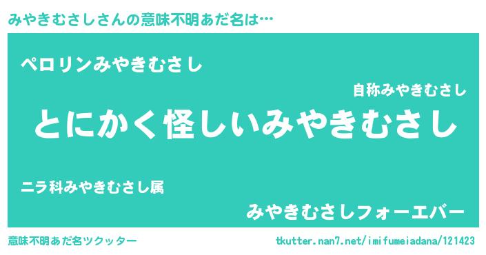 | ポケモン風あだ名 | 『ヒミヤキムサシ』『ミヤゴンZ』 |