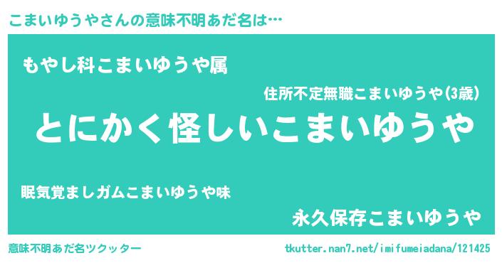 | 胡散臭い通販商品みたいなあだ名 | 『信頼と実績のサプリメント…その名も「こまいゆうや」』 |