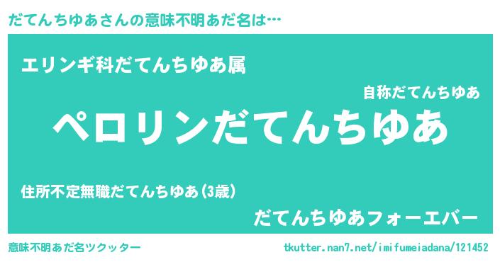 | 肩書あだ名 | 『だてんちゆあCEO』『だてんちゆあ中将』 |