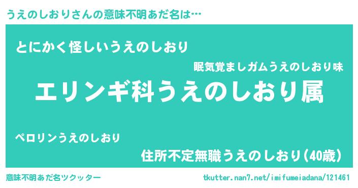 | 料理風あだ名 | 『うえのしおりごはん』 |