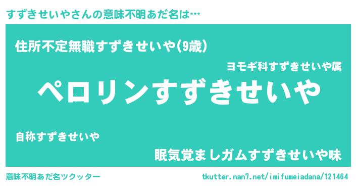| 欧米人風あだ名 | 『すずきせいや・ステッグマイヤー』 |