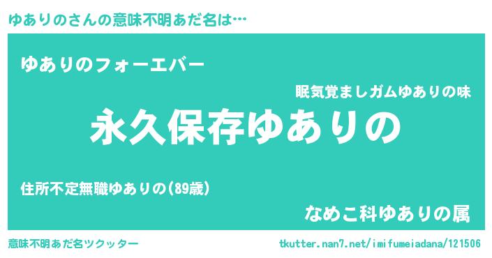 | 女子向けラノベタイトル風あだ名 | 『異世界で失敗しない100のゆありの』 |