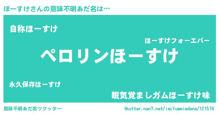 | 胡散臭い通販商品みたいなあだ名 | 『億万長者になれるブレスレット…その名も「ほーすけ」』 |