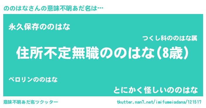 | 胡散臭い通販商品みたいなあだ名 | 『あなたにだけ特別に提供する100年もののヴィンテージワイン…その名も「ののはな」』 |