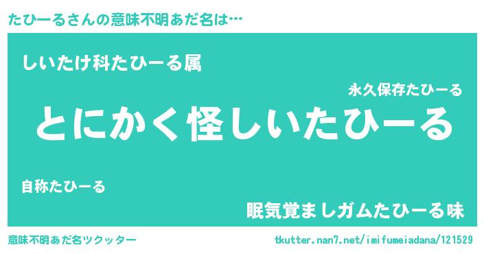 | ヒーロー風カッコイイあだ名 | 『黄金騎士タヒ』『正義の使者たひーる』 |