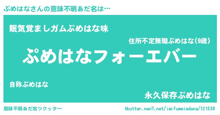 | 肩書あだ名 | 『ぷめはな国家主席』『ぷめはな学部長』 |